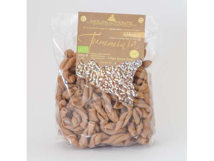 Pasta molino del ponte di semola integrale di grano duro siciliano. Confezione da 500 gr. Specifica nelle note il formato desiderato tra: quadrucci, abbracci, gnocchetti.