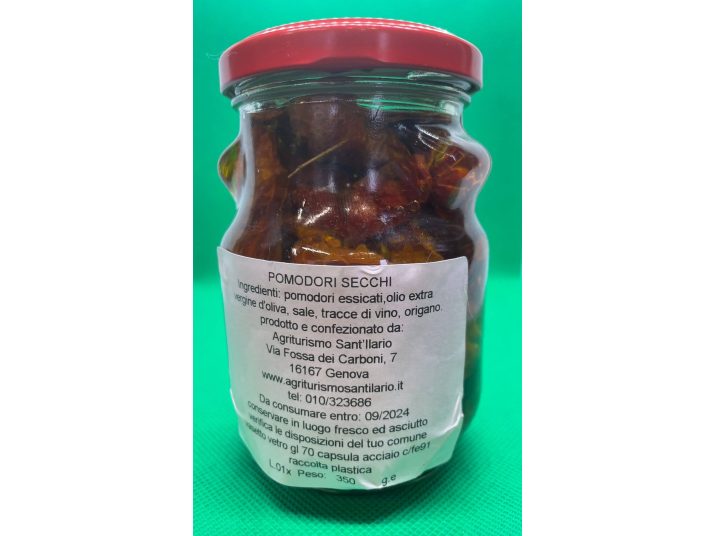 Pomodori secchi (vaso 350 ml). Prodotto da azienda agricola certificata biologica dal marchio Codex, azienda agricola S.Ilario