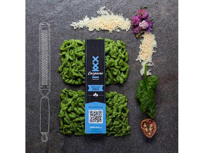 Prodotto precotto, pastorizzato e confezionato in atmosfera protettiva. Tipico della cucina tirolese ricavato impastando farina, spinaci e uova, va consumato previa cottura.